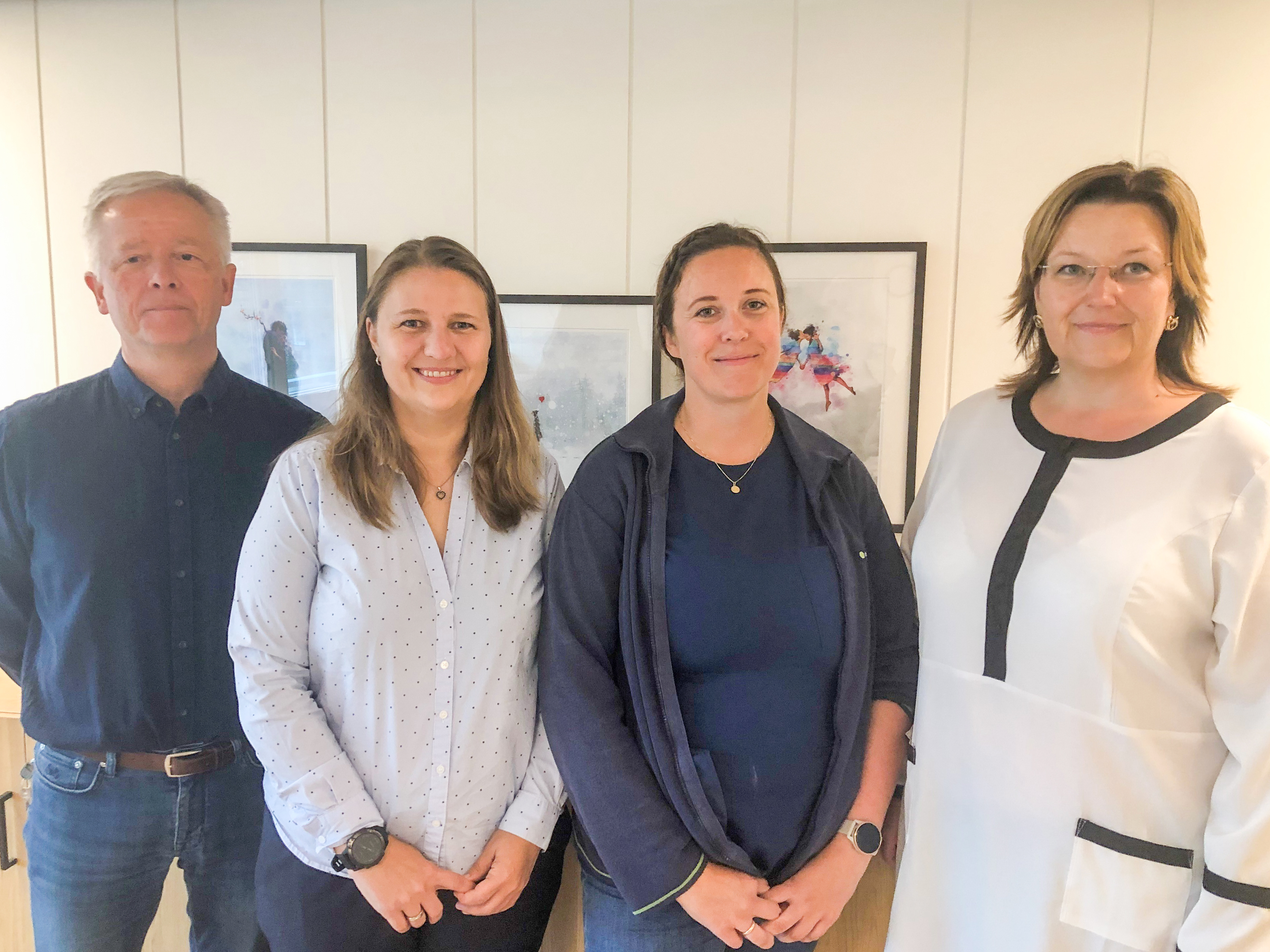 Signering: Fra signeringen av samarbeidsavtalene med Aurskog apotek og Løken apotek 5.8.22: Fra venstre: Rådgiver i fagstab helse og livsmestring Lasse Fure, apoteker Silje Torp Dalholt ved Aurskog apotek, apoteker Kristiane Karlsen ved Løken apotek og kommunalsjef helse og livsmestring Kjersti Vevstad.