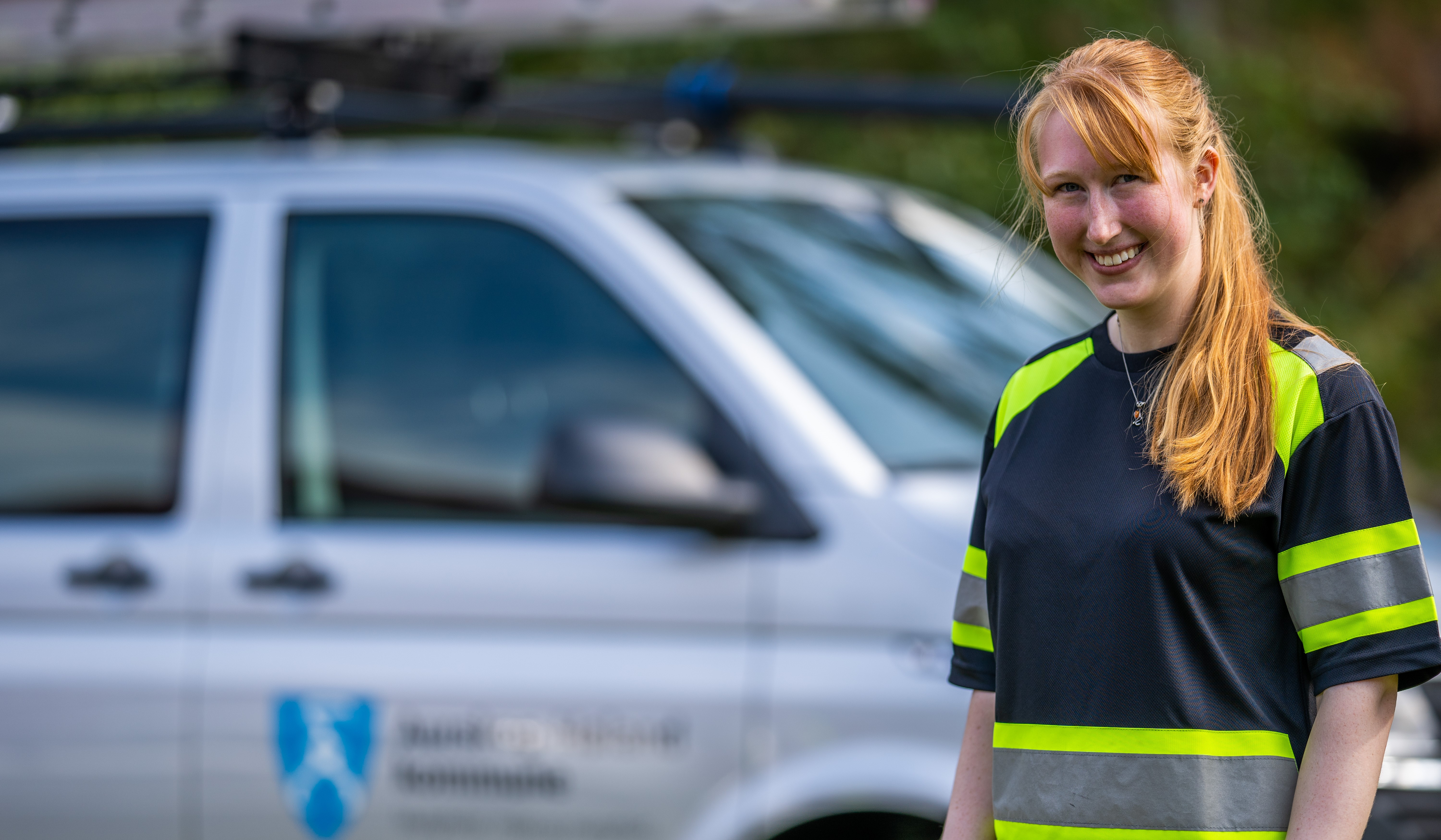 HJELPER DEG: Jenny Foss Gulliksen jobber som oppmålingsingeniør på Kommunalteknisk og kan hjelpe dersom det er praktiske utfordringer knyttet til entreprenørportalen. Send mail til va@ahk.no