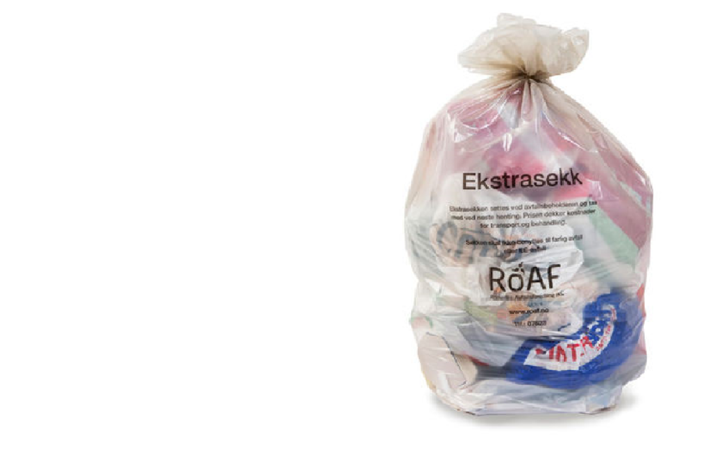 Ekstrasekken er gjennomsiktig slik at vi har kontroll på at uønsket avfall ikke havner i sekken.