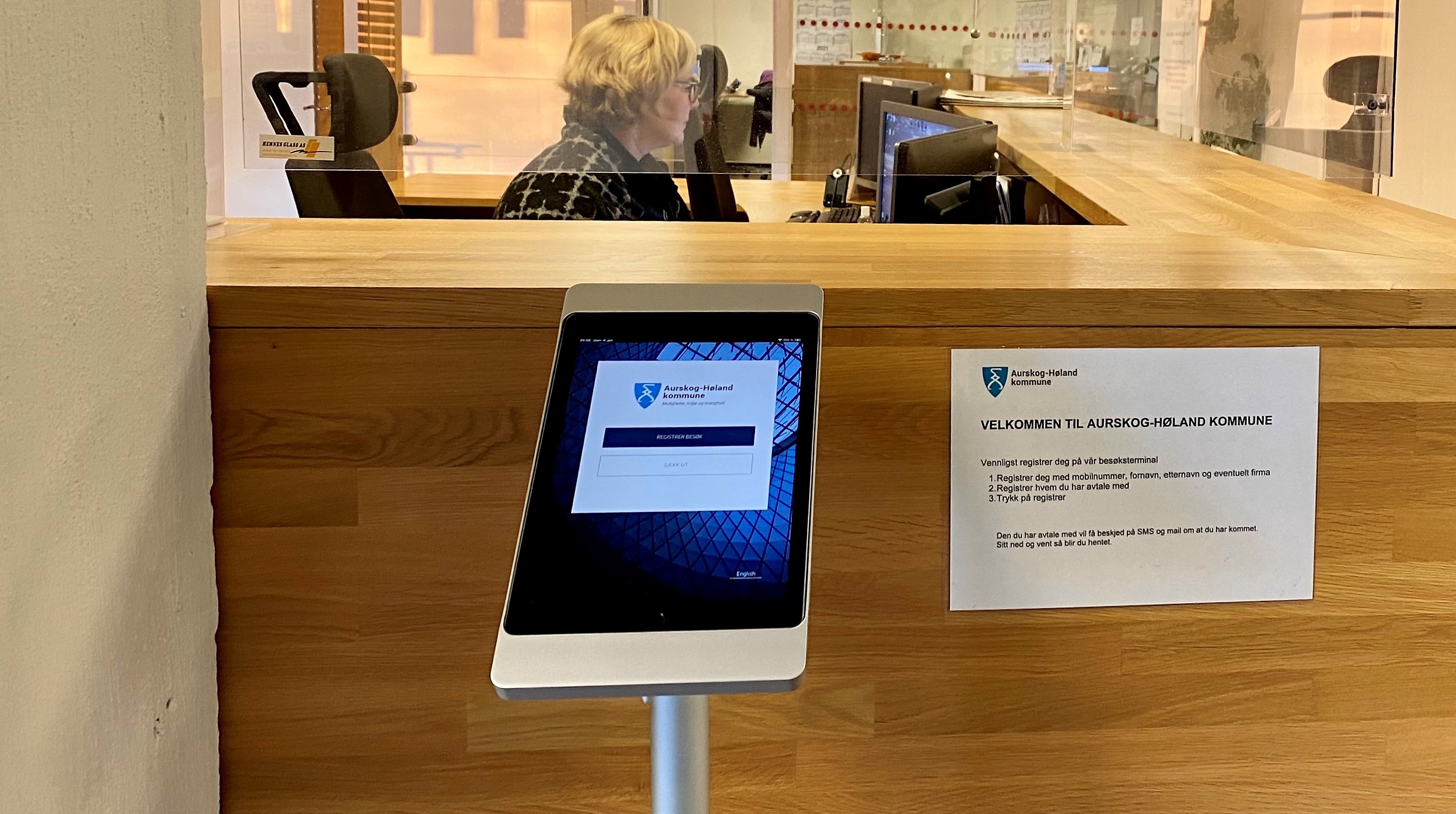 Ved resepsjonen til rådhuset finner du nå en ny maskin. Den kan de som har en avtale på rådhuset registrere seg på og de du skal besøke vil få beskjed.