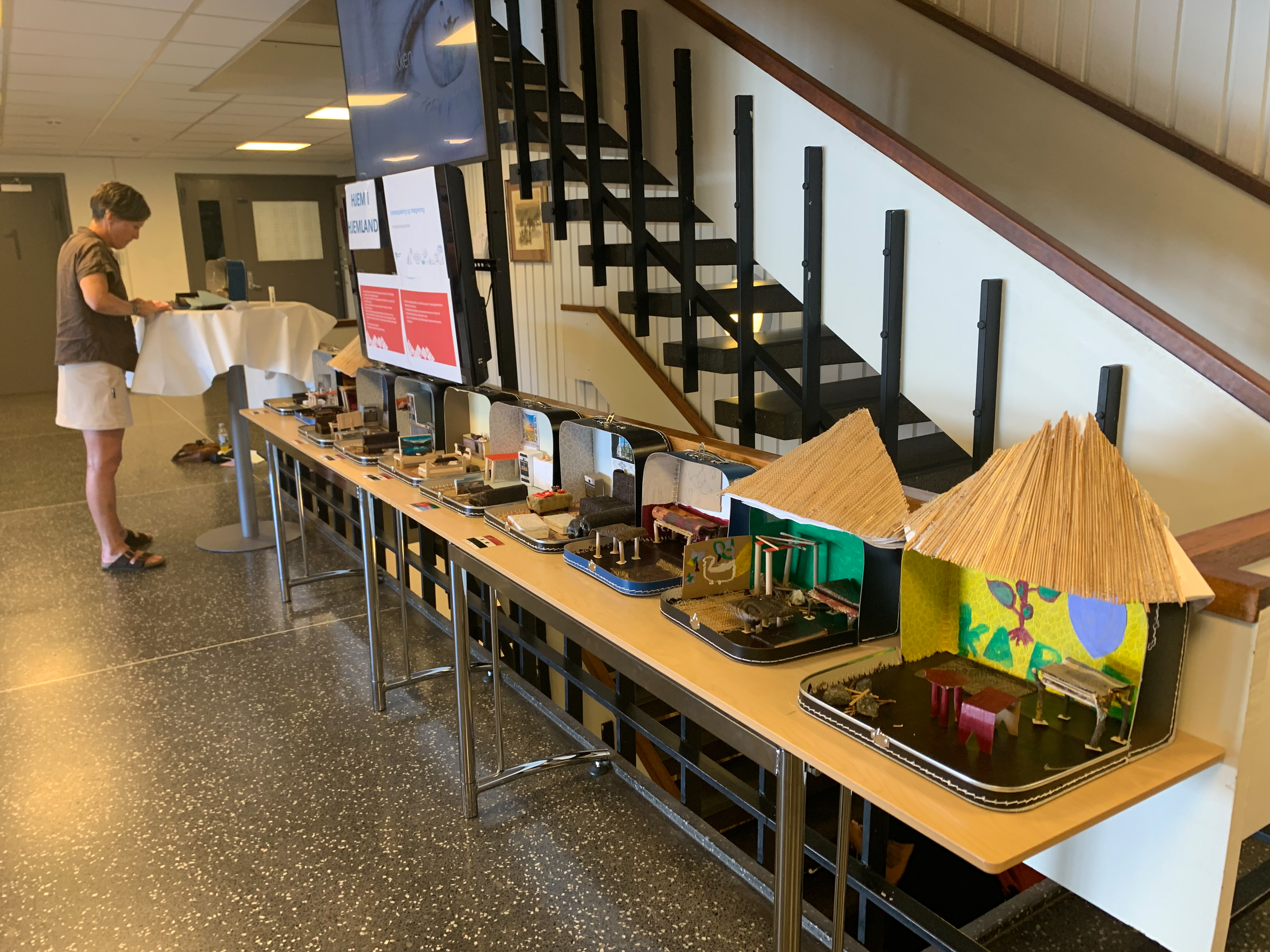 – Denne utstillingen viser hjemmet i flyktningens hjemland. De er blitt laget av deltakere på introduksjonsprogram. Vi har valgt å bruke koffert som utgangspunkt fordi koffert er et symbol for å reise og flytte på seg, sier Marit Dianne Moen, leder for voksenopplæring og integrering i Aurskog-Høland kommune.
