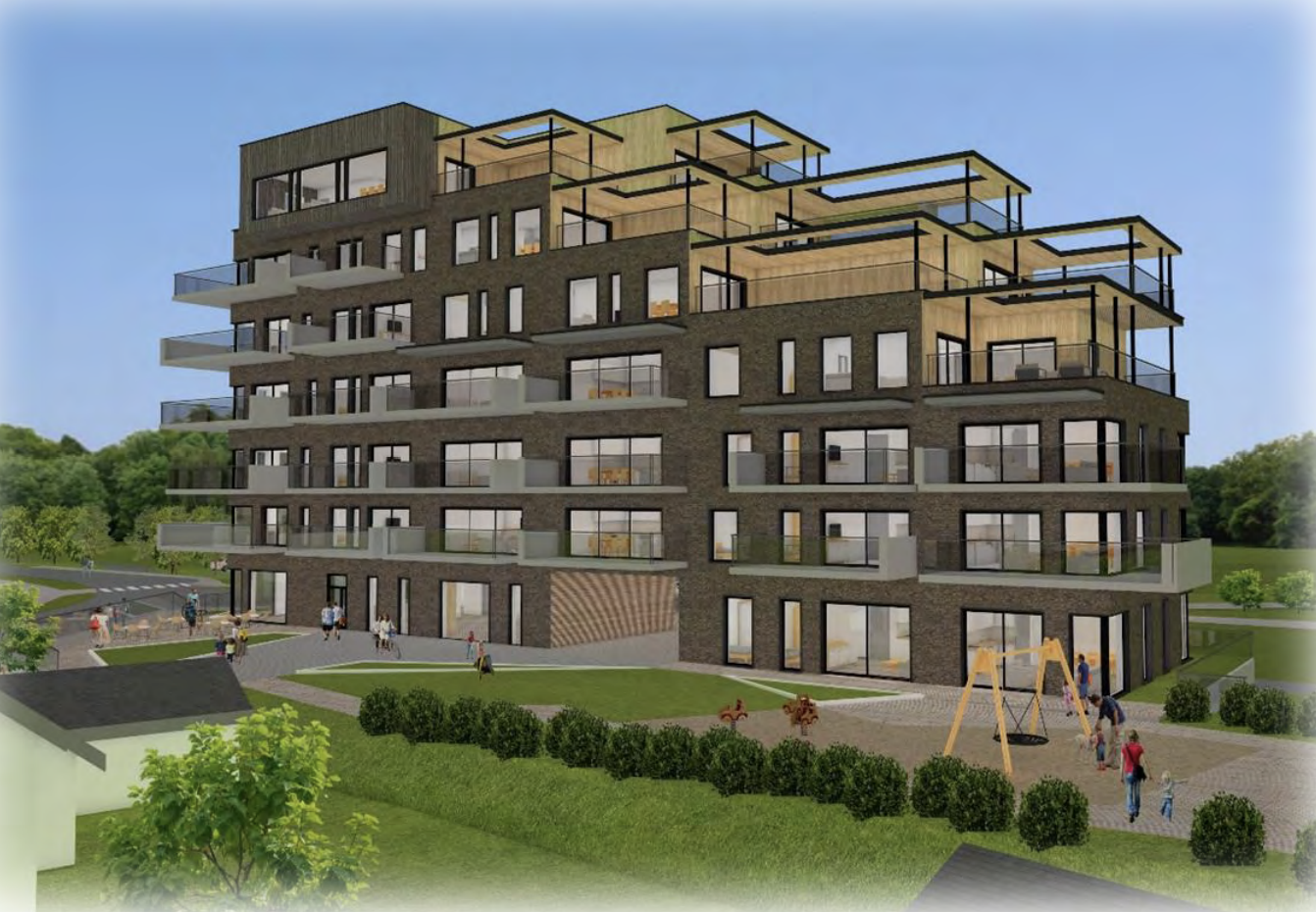 - Det legges opp til etablering av en boligblokk på 3-7 etasjer med til sammen 28 leiligheter i ulik størrelse.