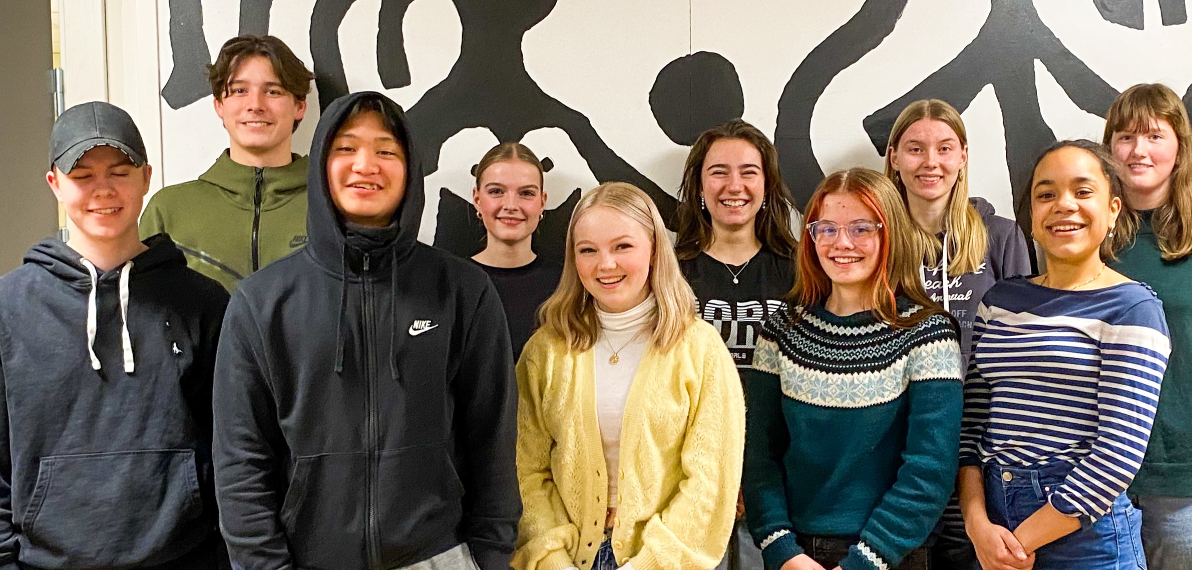 Fra venstre: Rekke 1: Jesper Othelius Kelly (med caps), Rooben Myo, Pernille Jøsang Østreng, Ingeborg Solbakken, Victoria Chioma Ukaegbu. Rekke 2: Edvard Braathen Nes, Kaja Kamphuis, Maja Ozog, Saga Selvin og Linnea Hogseth Aastad. Mia Ottesen var ikke til stede da bildet ble tatt.