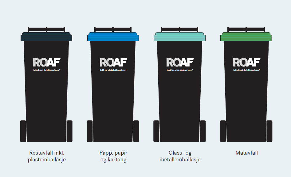 - Restavfall inkl. plastemballasje – egen beholder