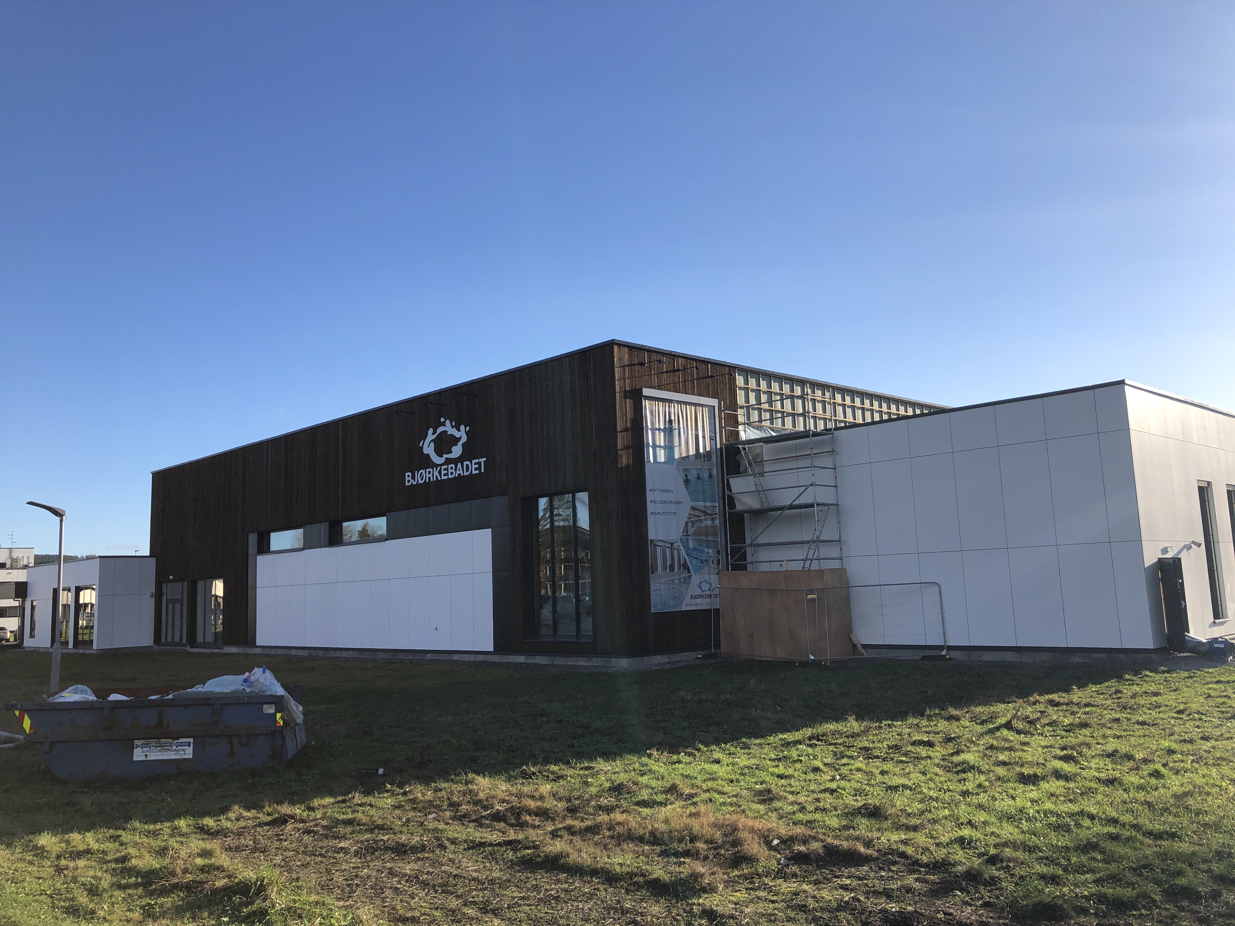 Det er oppdaget at membrand har løsnet fra en plate på veggen mot Haldenveien på Bjørkebadet. Derfor er kledningen fjernet fra fasaden.
