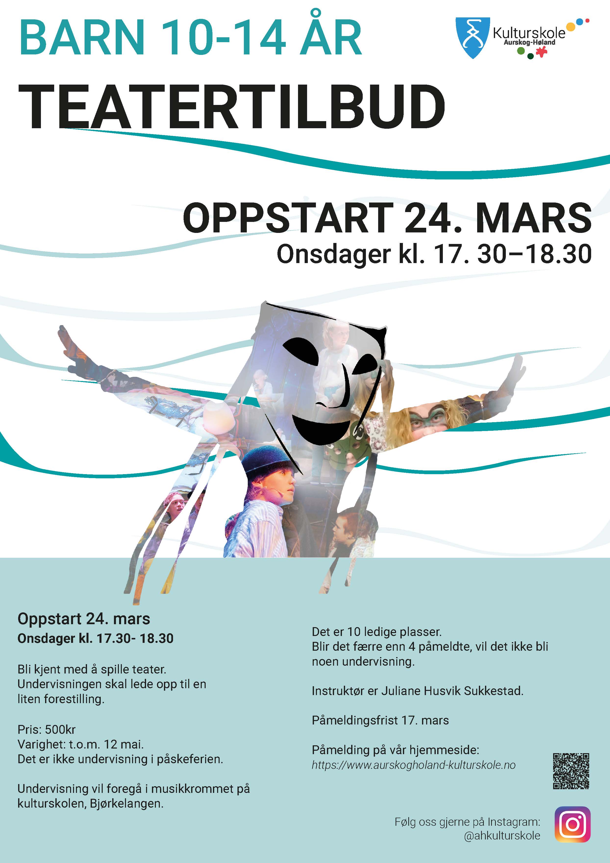 Den 24. mars starter Aurskog-Høland kulturskole opp et nytt tilbud for deg som vil spille teater.
